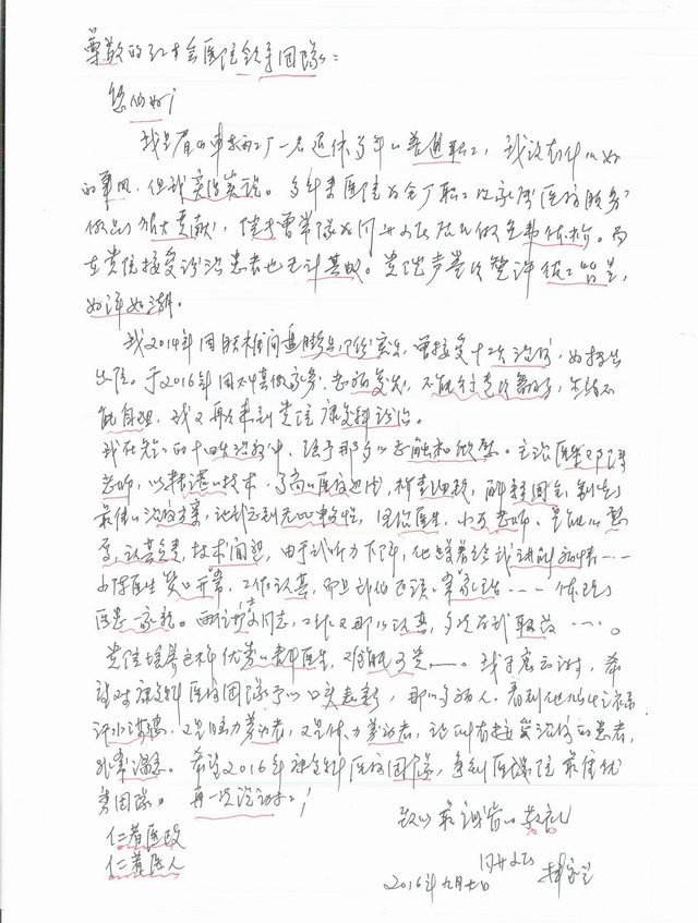2016年9月7日,眉山车辆工厂一名退休职工给我院寄来的一封感谢信。 下一个: