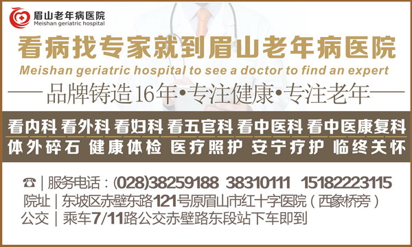 眉山老年病医院 地址:眉山东坡区赤壁路121号 电话:028-38310111 邮编:620010 蜀ICP备06030264