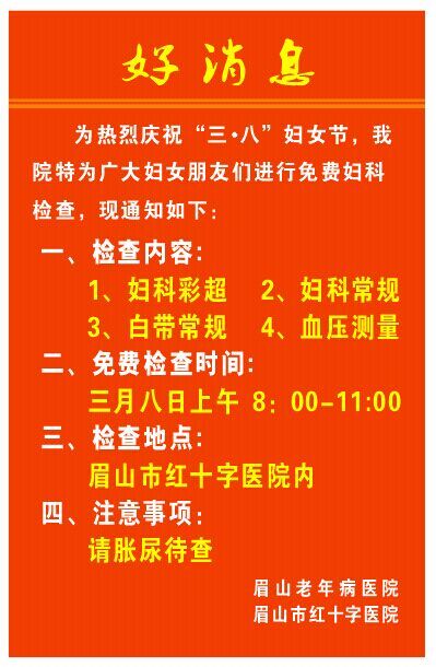 2016年3月8日,“三·八”妇女节,为关爱女性健康,我院特在今天推出免费妇科检查活动。