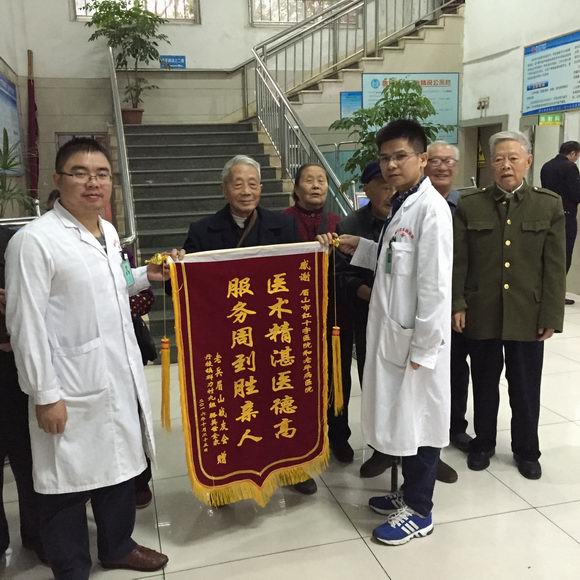 骆大爷出院后,骆大爷及家人非常感谢眉山老年病医院李院长及其他医护人员的精湛医术和精心护理,全家人及部分战友一道于10月28日上午专程从丹棱来到眉山老年病医院送来锦旗,以表达他及全家对眉山老年病医院的感激之情! |