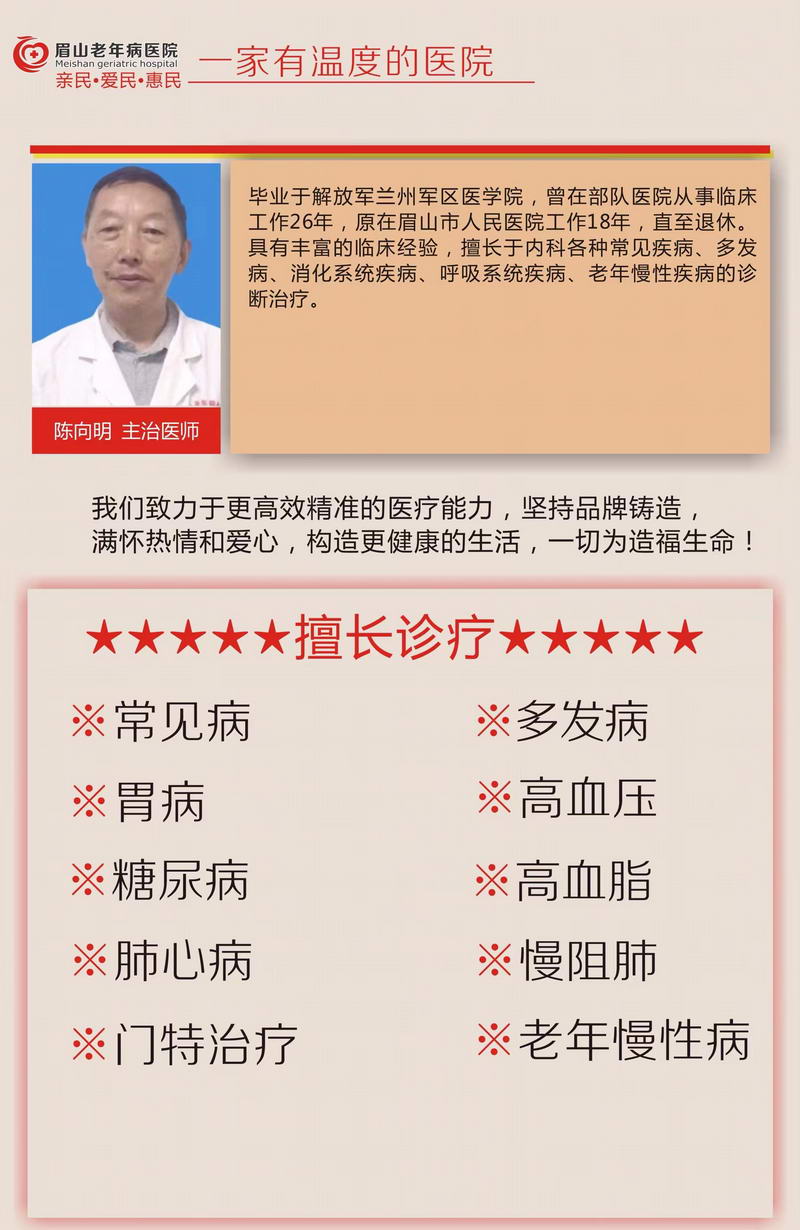 眉山老年病医院 地址:眉山东坡区赤壁路121号 电话:028-38310111 邮编:620010 蜀ICP备06030264
